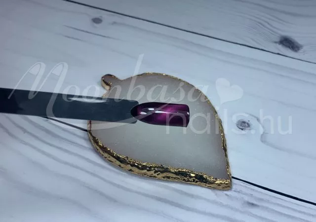 A mágnes segítségével a csillámló arany szemeket egy sávba tudod vonzani, amely ezt a különleges tigrisszem hatást fogja kelteni. A Tigrisszem lakkzselé két rétegben tökéletesen fed. Az első réteget UV/LED lámpa fénye alatt köttesd meg. A második rétegen alkalmazd a mágnest megkötés előtt.