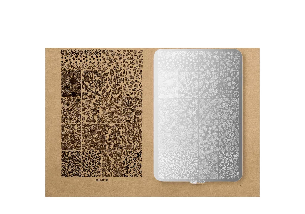 Placă pentru stampilare unghii 9,5x14,5cm GB-010 Modele florale körömnyomdalemez – Tökéletes minták pillanatok alatt