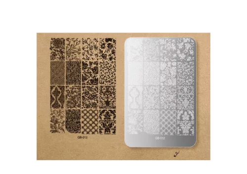 A Placă pentru stampilare unghii 9,5 x 14,5 cm GB-012 Imprimeu clasic oriental használatával nem kell többé szalonba menned, hogy különleges és szabályos mintákat kapj. A lemezeken található aprólékosan megmunkált minták – átlagosan 12 különböző minta, kb. 1,5 x 2,5 cm méretben – tökéletesen illeszkednek bármilyen körömformához: rövid, hosszú, mandula, stiletto vagy szalonkocka.