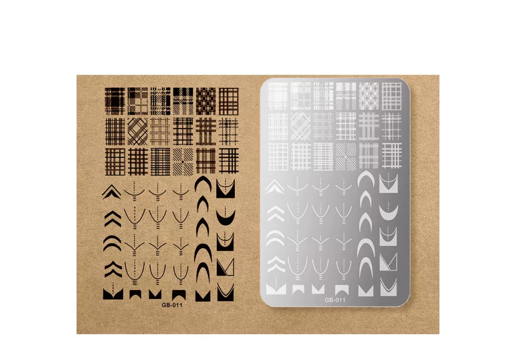 Placă pentru stampilare unghii 9,5x14,5cm GB-011 Carouri franceze körömnyomdalemez – Tökéletes minták pillanatok alatt